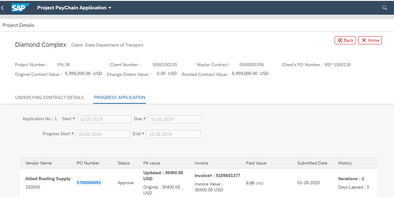 Create and manage payment applications from start-to-finish, based on project progress, workflows, hold-backs, etc. by collaborating with suppliers and subcontractors through controlled (restricted to individual contracts only) and secured SAP Cloud based solution platform.