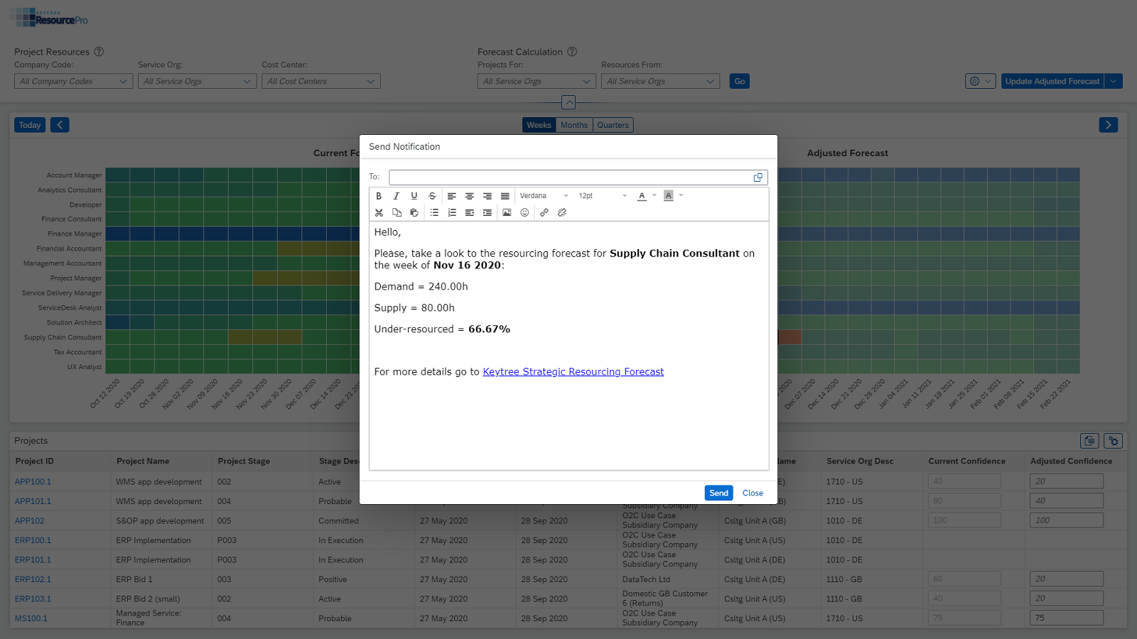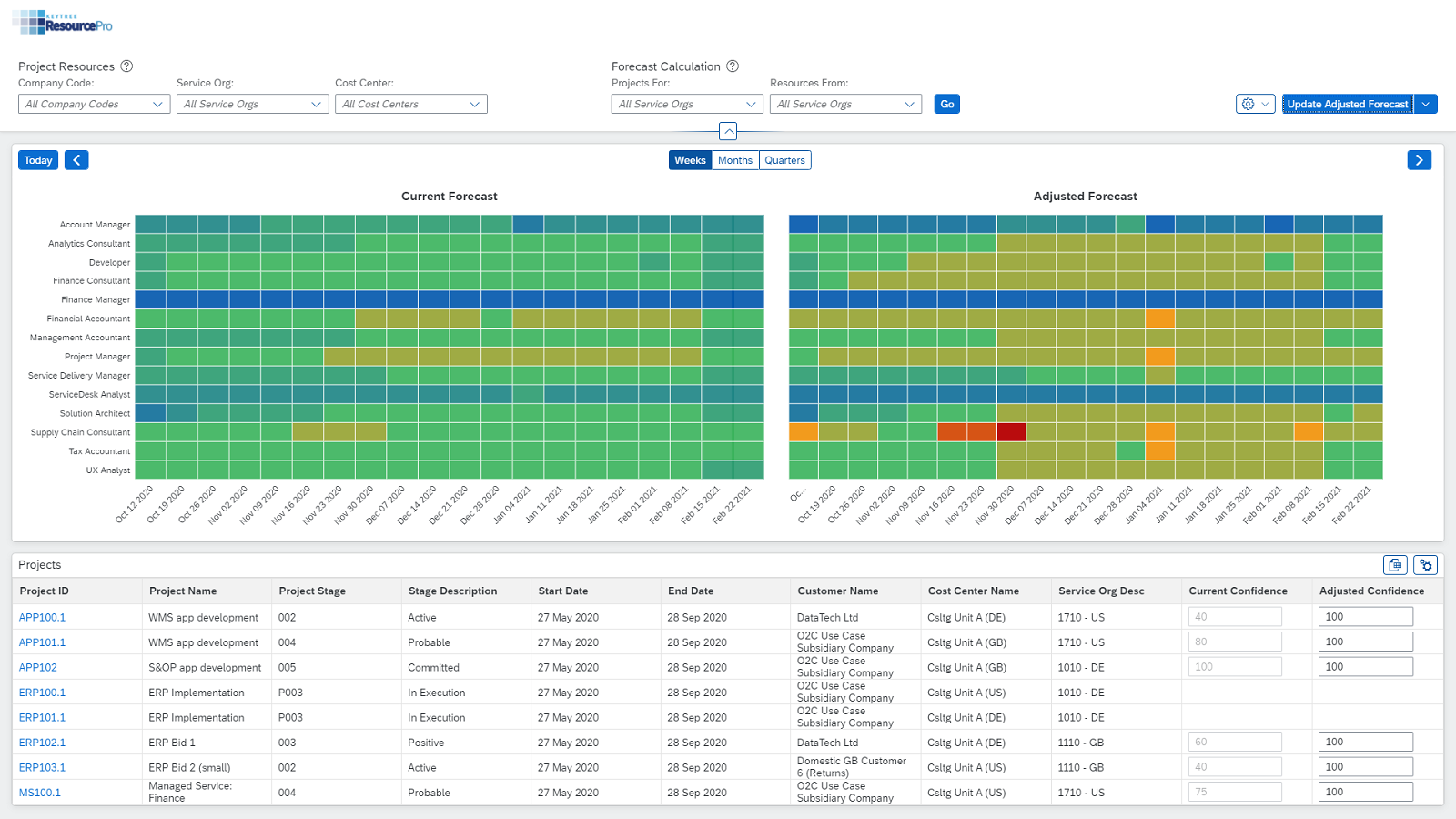 ResourcePro provides accurate understanding of your sales pipeline, in-flight projects, delivery resources and recruitment needs integrating SAP S/4HANA and SuccessFactors.The results are higher cross-firm margins, faster time to revenue, and improved customer service and project delivery.